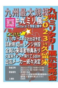 出店一覧 目次出店一覧第4回九ミリ展(2026年2月)第3回九ミリ展(2025年2月)第2回九ミリ展(2024年2月)第1回九ミリ展(2023年2月)イベントテスト3イベントテスト2最新イベント情報 出店一覧 第4回九ミリ展(2026年2月) 目次出店一覧ガレージオガワドットコムBL... 第3回九ミリ展(2025年2月) 出店一覧 第3回九州ミリサバ展示即売会2... 第2回九ミリ展(2024年2月) 目次出店一覧TG-TACTICALOPバ... 第1回九ミリ展(2023年2月) 出店一覧 第1回九州ミリサバ展示即売会2... イベントテスト3 イベントテスト3です イベントテスト2 イベントテスト2です 1 2 次へ » 最新イベント情報 詳細はこちらから Xでシェア LINEで送る Facebook リンクをコピー